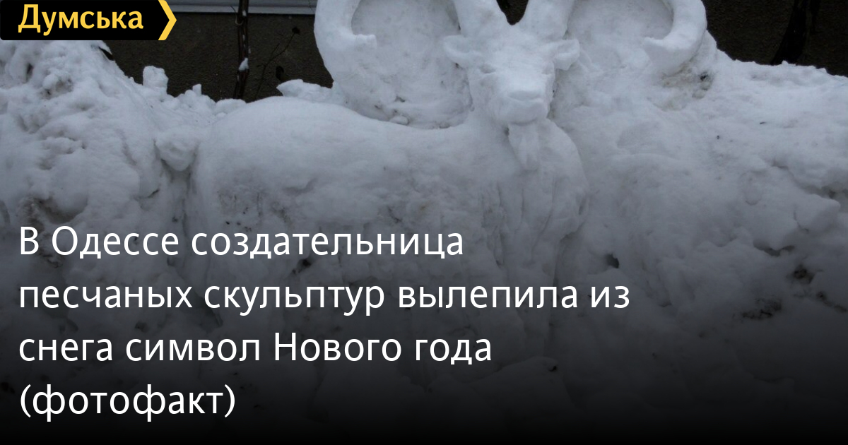 Одесситка Ирина Загайчук, которая создает прекрасные песчаные фигуры на пляже в Лузановке, вылепила из снега символ 2015 года — горного козла.