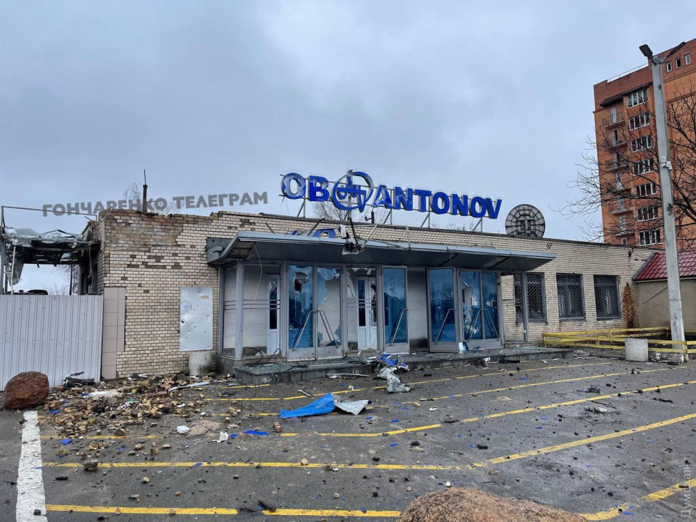 Ан-124 «Руслан» с регистрационным номером UR-82009, стоявший в ангаре на регламентных работах, получил многочисленные повреждения, вызванные бомбардировкой и пожаром внутри фюзеляжа. В левой задней части видны прогоревшие участки, поэтому сейчас трудно сказать, будет ли он восстановлен. Ранее этот борт модернизировали до самой последней версии «Русланов» — Ан-124-100М-150, обладающий большей грузоподъемностью, чем ранние варианты.