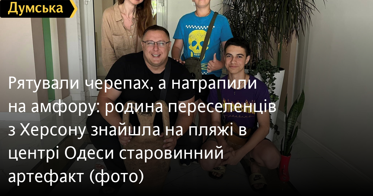 Рятували черепах, а натрапили на амфору: родина переселенців з Херсону знайшла на пляжі в центрі Одеси старовинний артефакт❤ 697 👍 223 😱 10 💩 5 👎 2 Візантійську амфору, яку переселенці з Херсону знайшли на пляжі Ланжерон, передали до краєзнавчого музею у їхньому рідному місті. Все вийшло випадково — родина рятувала прісноводних черепах, яких принесло до одеського берега через підрив ГЕС, повідомили в херсонському закладі. І раптом побачили незвичну посудину, що наближалася до пляжу. Виловивши її з води, Юрій Пословський (історик за фахом) зрозумів, що це візантійська амфора. Родина вирішила передати знахідку до музею. Згадавши про пограбований краєзнавчий музей у рідному місті, вони подарували артефакт саме цьому закладу. Важка глиняна амфора не потонула завдяки земляній пробці, що утворилася у горловині посудини. Можемо тільки здогадуватися, була вона вимита з підтопленої прибережної зони чи з потонулого корабля. Будь в якому випадку щедра південна земля поділилася з херсонцями своїми скарбами! Амфору вже доставили до місця призначення і згодом займе гідне місце в експозиції. СМЕРТЬ РОСІЙСЬКИМ ОКУПАНТАМ! Помітили помилку? Виділяйте слова з помилкою та натискайте control-enter |