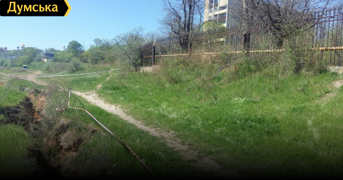 В пролом году на части склона под санаторием ГСЧС, что на 16-й станции Большого Фонтана, образовались огромные трещины. Большой участок скалы может рухнуть вниз в любое время.