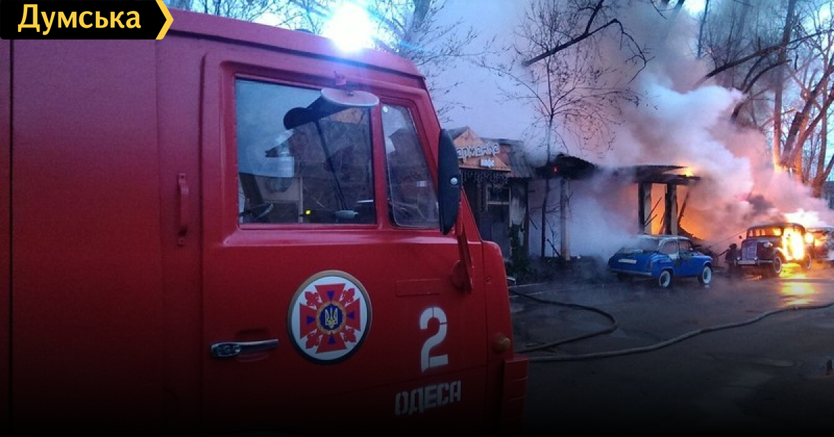 Спасатели: сгоревшее на Французском кафе нарушало правила пожарной безопасностиСгоревшее сегодня утром на Французском бульваре кафе «Шарманка» работало с многочисленными нарушениями правил пожарной безопасности. Об этом сообщили в облуправлении ГСЧС. В частности, отмечают пожарные, территория заведения была захламлена, а по периметру задней части была проложена временная самодельная электропроводка. Сотрудники ГСЧС не дали огню распространиться на расположенный по соседству лечебный корпус института имени В.П. Филатова. Этот факт на аппаратном совещании в мэрии отметил городской голова Геннадий Труханов. Он лично поблагодарил спасателей за проявленный профессионализм. Возгорание произошло примерно в 6 утра. Через 7 минут после поступления сигнала о пожаре на место прибыли первые пожарно-спасательные подразделения. Они действовали по повышенному рангу вызова «1 БИС». «К моменту прибытия подразделений уже горело кафе и 4 машины. На заднем дворе кафе лежало большое количество деревянных поддонов, которые способствовали распространению огня», — рассказал старший помощник дежурной смены оперативно-координационного центра по вопросам оперативного реагирования ГУ ГСЧС Алексей Дурягин. Рискуя жизнью, пожарные вынесли из пылающего помещения два баллона с углекислотой и пропан-бутаном. В 06:26 пожар был локализован. Общая площадь его составила 100 квадратных метров. Огонь повредил четыре ретро-машины. На месте событий работало 4 единицы основной и специальной техники, а также 24 человека. Погибших и пострадавших нет, причины возгорания выясняются. ОБНОВЛЕНО В 11:32. Интересно, что «Шарманка» принадлежит тому же человеку, чей ресторан «Чито-Гврито» напротив Музкомедии был сожжен в апреле 2013 года неизвестными. Фото — Автомайдан