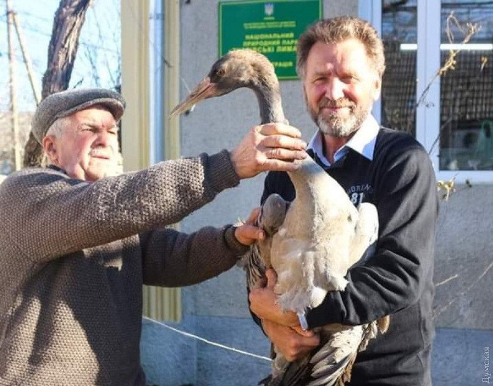 Оказалось, что птичье крыло было повреждено охотничьей дробью. Журавля прооперировали, и некоторое время он жил в национальном парке. Так как из-за травмы журавль больше не сможет летать, было принято решение передать его в одесский зоопарк.