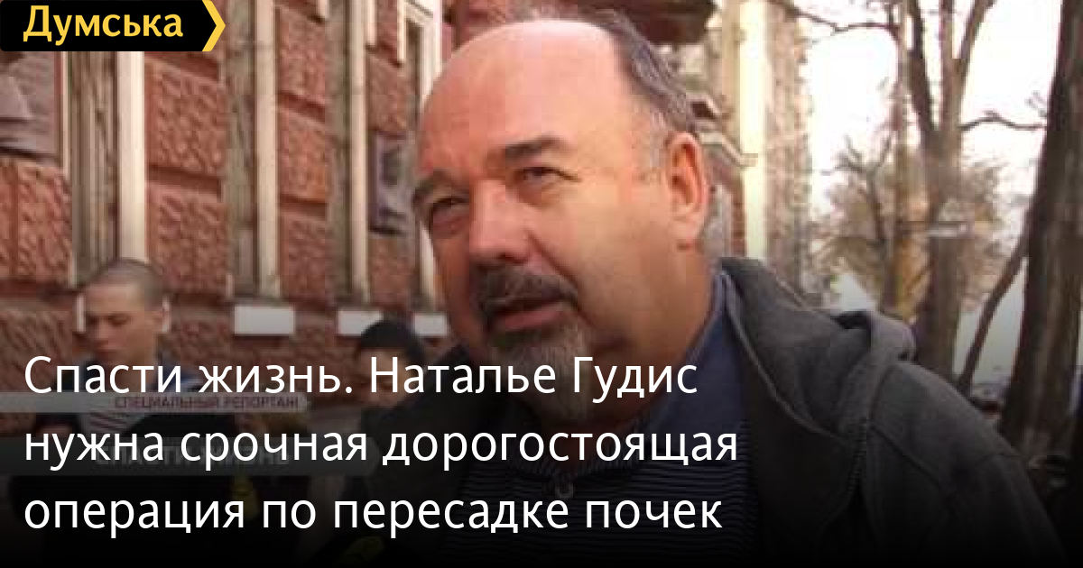 Спасти жизнь. Наталье Гудис нужна срочная дорогостоящая операция по пересадке почекПять лет известный тренер и мастер спорта по художественной гимнастике Наталья Гудис борется за свою жизнь. Красная системная волчанка повлияла на жизненно важный орган — почки. Они не работают. Функцию очищения организма взяли на себя дорогостоящие медицинские процедуры. карточка ПРИВАТ БАНК 4149 4978 1965 8545, телефон отца 063 735 49 38 (Анатолий Григорьевич) СМЕРТЬ РОССИЙСКИМ ОККУПАНТАМ! Заметили ошибку? Выделяйте слова с ошибкой и нажимайте control-enter Думская ТВ. Сюжеты: