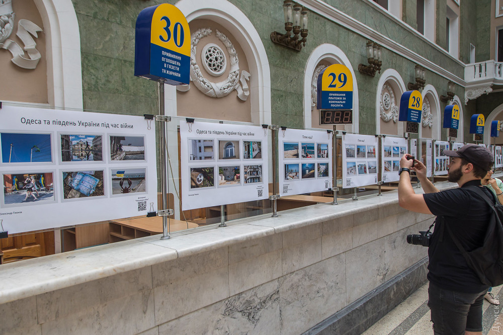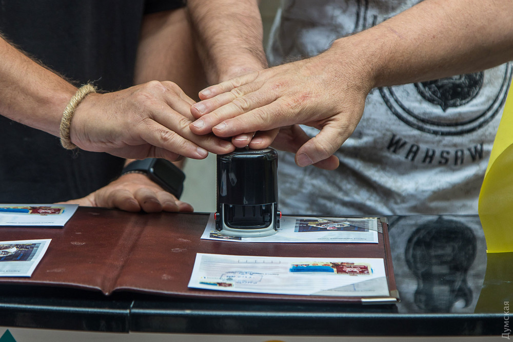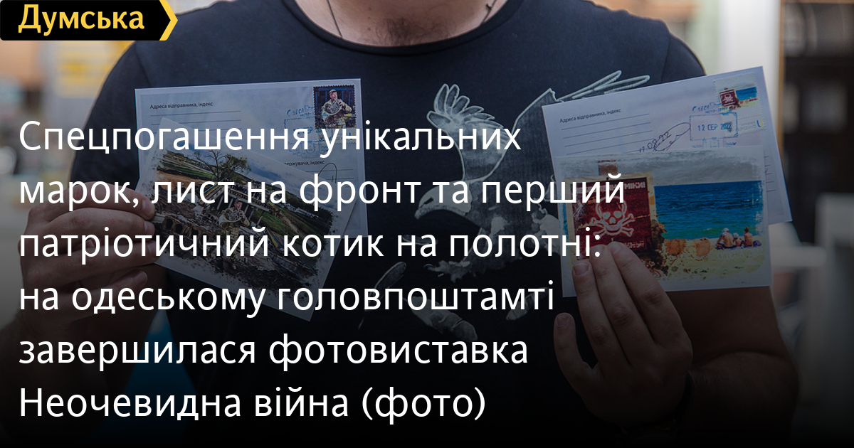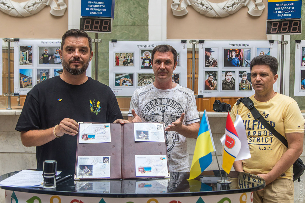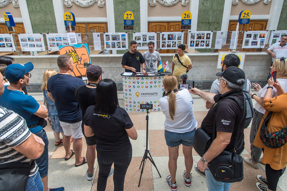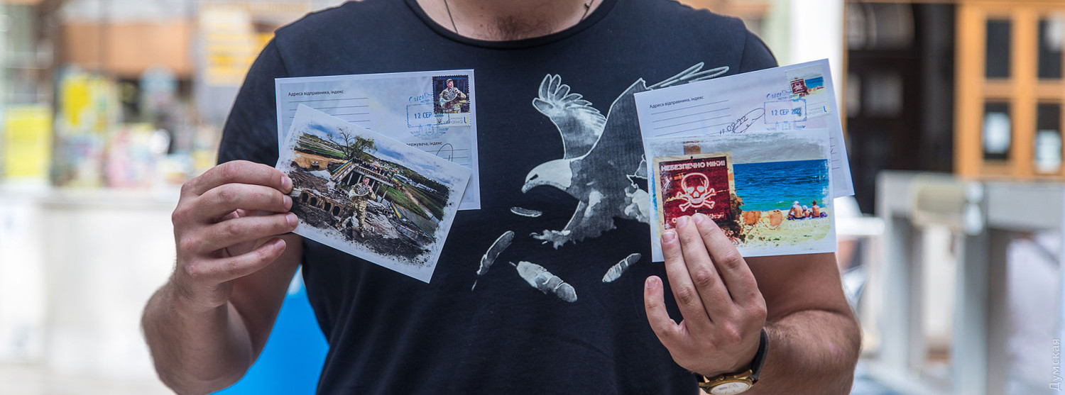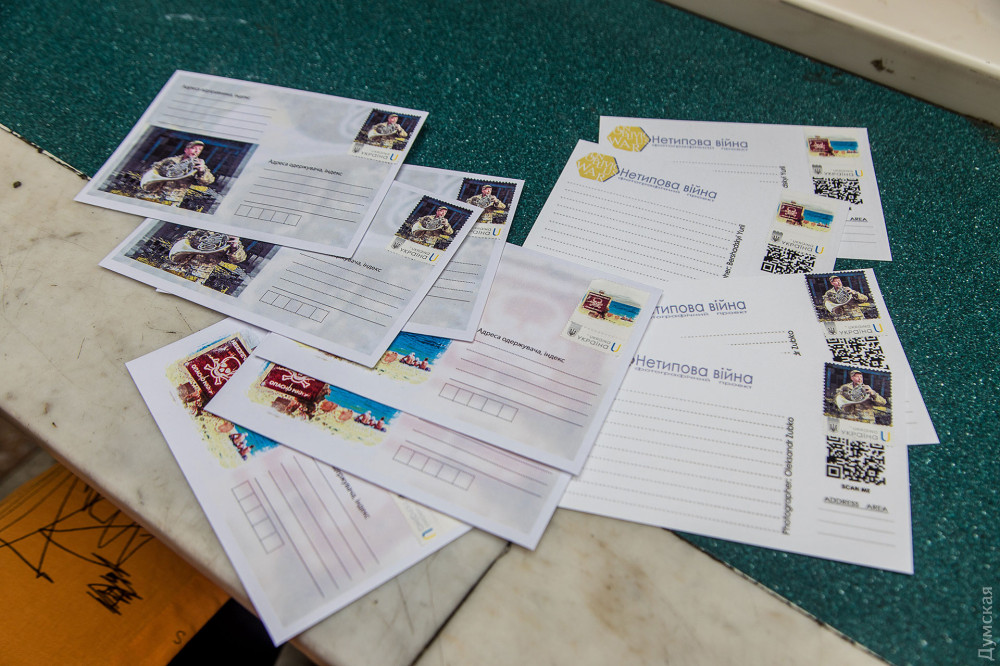 Дві унікальні марки «Валторніст» та «Пляж наш?» урочисто погасили у головній залі Одеського головпоштамту на честь завершення фотовиставки «Неочевидна війна», яка тут експонувалася з кінця липня.Ілюстраціями для марок стали дві фотороботи: киянина Олександра Зубка та одесита Юрія Бершадського. Перший презентував на виставці свій проєкт «Джазмени на війні», присвячений відомим українським музикантам, які змінили свої звичні інструменти на зброю для захисту країни від агресора. Юрій Бершадський, в свою чергу, документував життя одеських пляжів, замінованих силами оборони від ворожого десанту.«В уяві більшості людей війна – це бомби, вибухи, кров тощо, але треба розуміти, що війна, це набагато більше та глибше, – упевнений Юрій Бершадський. — Вона проникає у всі сфери нашого життя, змінює наш устрій далеко від лінії фронту. Ми вирішили привернути увагу громадськості до тих змін, які відбуваються у наших життях із приходом страшної та нікому не потрібної війни».Інші учасники фотовиставки, одесити: фотокореспондент нашого видання Олександр Гіманов із серією «Одеса та південь України під час війни», Анастасія Хлєбнікова із присвяченим волонтерам проєктом «Бути українцем», Олександр Каменських із серією «Розбиті вікна», про наслідки російської окупації півночі та Олександр Воропаєв із проєктом «Культурна війна».В рамках заходу одесити змогли відправити листа до підрозділу, де служить герой нової марки, валторніст Валерій Мірошниченко, а також взяти участь у благодійному аукціоні картини «Котик-репортер» від відомих вуличних художників LBWS_168.Після кількох кроків, єдиного з патріотичних котиків, зображеного на полотні за 5,5 тис. гривень, придбала Ксенія Вікуліна — волонтер зоозахисної організації Animal-SOS, яка опікується вуличними та покинутими тваринами.«Я дуже люблю цих котиків, – зізналася шанувальниця патріотичних стінописів. – Вони дуже надихають, я стежу за кожною новою роботою цього проєкту. Ці малюнки вдихнули в нас усіх патріотичні почуття і, крім того, котики – це обличчя Одеси».Кошти, зібрані під час аукціону та продажу — марок, конвертів та листівок, будуть спрямовані на благодійність.«Зібрані кошти ми відправимо на продуктові набори, які на Торговій, 54 можуть отримати незаможні одесити та тимчасово переміщені мешканці інших областей, – розповів один з організаторів та авторів виставки Олександр Воропаєв. – Наступним містом, де ми покажемо «Неочевидну війну», стане польський Гданськ. Крім того, ми ведемо переговори з галереями Львова та Києва. Спеціально для цих майданчиків ми переформатуємо експозицію, бо на головпоштамті ми наголошували на одеській темі, там вона буде більшою міжнародною та національною».