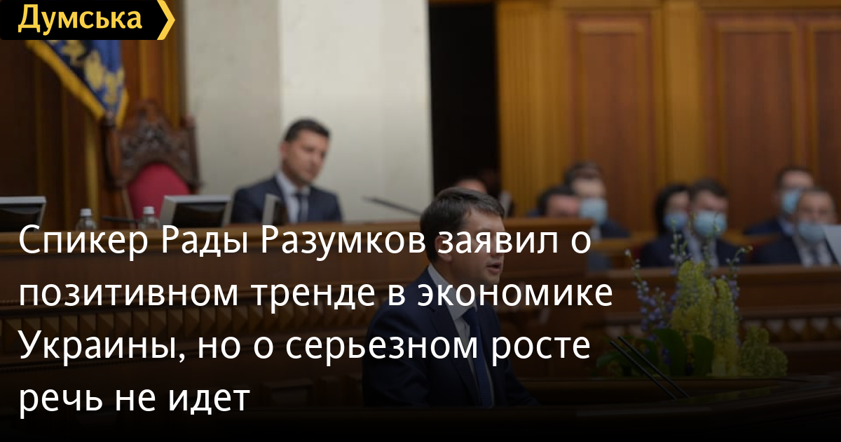 Спикер Рады Разумков заявил о позитивном тренде в экономике Украины, но о серьезном росте речь не идетГлава Верховной Рады Дмитрий Разумков заявил, что экономика Украины постепенно выходит из кризиса, но говорить о ее серьезном росте еще рано. «Если мы говорим о выполнении бюджета, то за последние полтора-два месяца мы видим положительный тренд — если до июня исполнении бюджета было, если не ошибаюсь, где-то 88%, то сейчас мы видим 92%. Это показывает, что экономика понемногу выходит из экономического кризиса, однако говорить о том, что мы вышли полностью, что мы можем говорить о серьезном росте, как и во всей Европе, как и во всем мире — я думаю, что это мягко говоря рано», — цитирует Разумкова «Интерфакс-Украина». По мнению Разумкова, экономический кризис, с которой сейчас столкнулся мир, «можно сравнить только с экономическими проблемами, которые мы видели после Второй мировой войны». СМЕРТЬ РОСІЙСЬКИМ ОКУПАНТАМ! Помітили помилку? Виділяйте слова з помилкою та натискайте control-enter