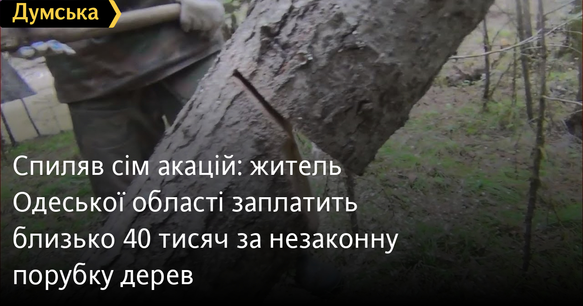 Спиляв сім акацій: житель Одеської області заплатить близько 40 тисяч за незаконну порубку дерев42-річного жителя Білгород-Дністровського району визнали винним у незаконній порубці дерев у захисних насадженнях. Як повідомляє пресслужба обласної поліції, згідно з рішенням суду порушник зобов'язаний виплатити 17 тисяч гривень штрафу і компенсувати завдані державі збитки та витрати на залучення фахівців — загалом близько 38 тисяч гривень. Встановлено, що в липні минулого року поліцейські викрили 42-річного жителя Саратської територіальної громади, який спиляв і підготував до транспортування сім дерев акації діаметром від 21 до 37 см. Дерева порушник пиляв у захисних насадженнях Ізмаїльського лісового господарства. Дозволу на це в нього не було. Правоохоронці вилучили спиляну деревину, металеву ручну пилку та машину з причепом. Обвинувальний акт щодо порушника направили до суду, який визнав чоловіка винним у незаконній порубці захисних насаджень. Помітили помилку? Виділяйте слова з помилкою та натискайте control-enter Новини по цій темі: 29 липня 2025: В Усатово Одеської області сталася перестрілка: поліція працює на місці (відео, оновлено) 28 липня 2025: П'яний на "Ягуарі" або гіпертонік? Звільнений топ-посадовець одеської поліції хоче повернутися на службу 19 червня 2025: Дівчинку, яку шукали сотні одеситів, знайшли вбитою: поліція працює з чоловіком, ймовірно причетним до загибелі 27 травня 2025: Увели гектар в університету: на Одещині засудили земельних аферистів, але без посадки і Хвоста |