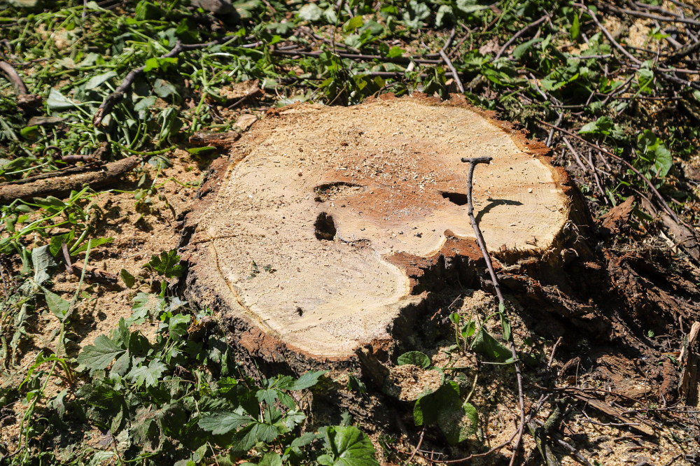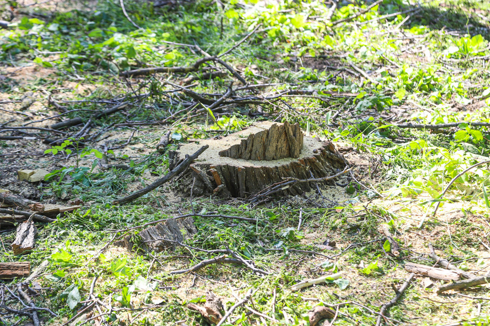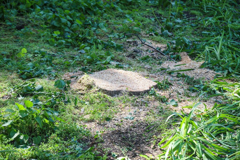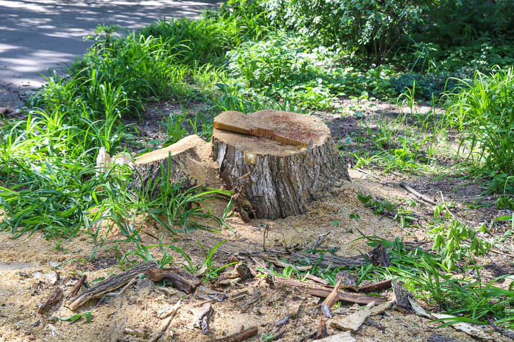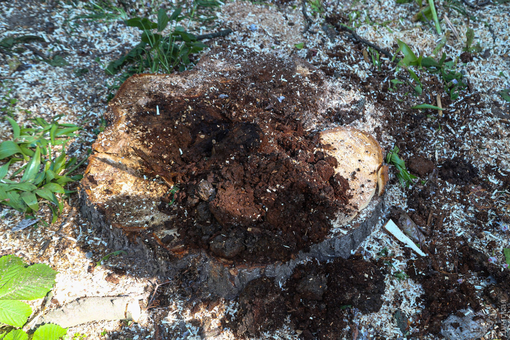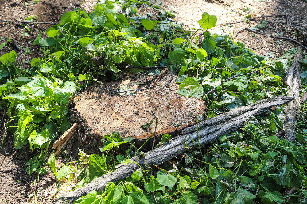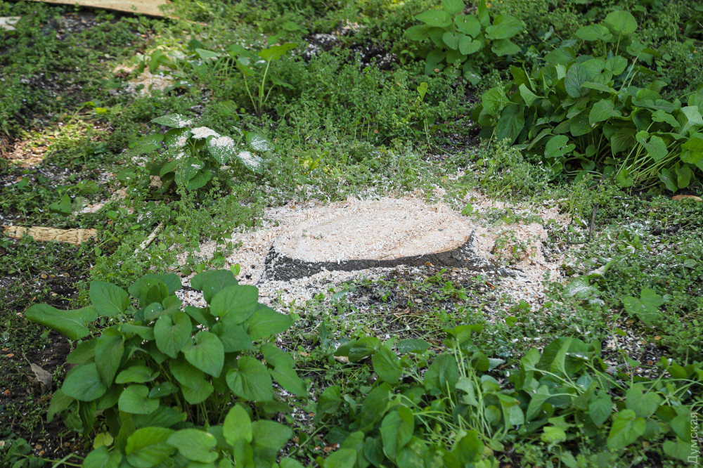 Еще одна акация осталась стоять, однако полностью зачищена от веток и больше похожа на столб.