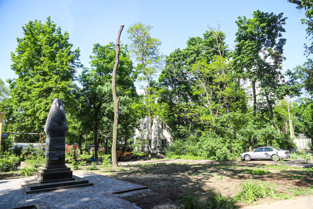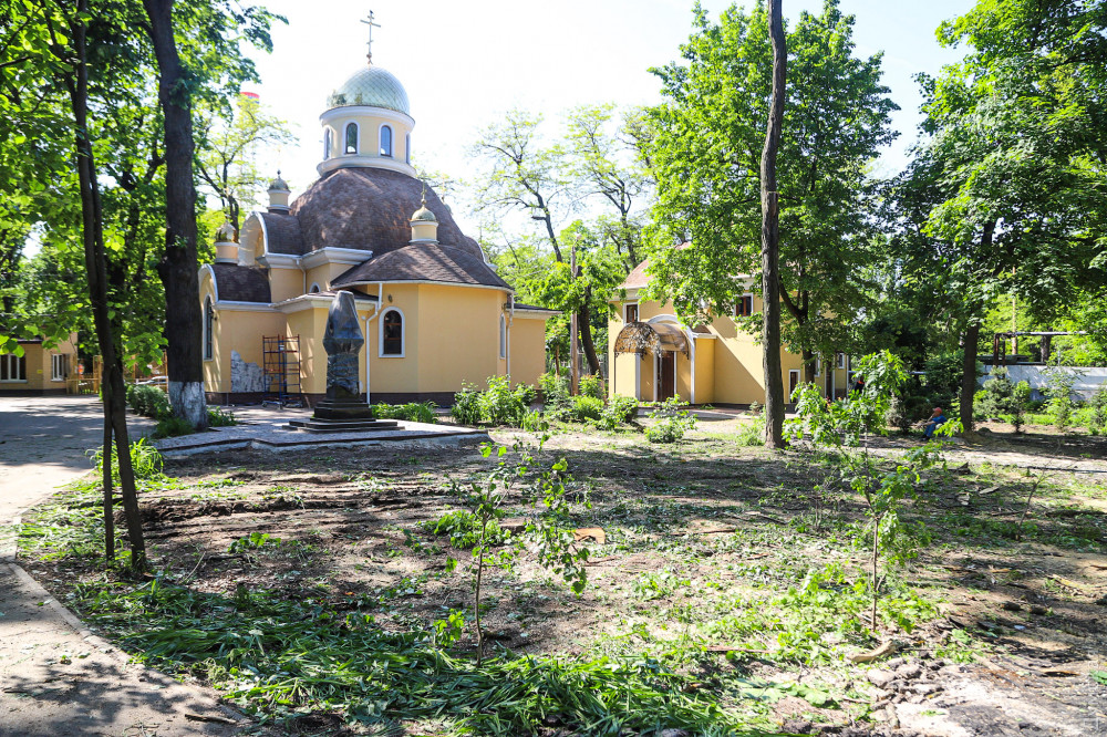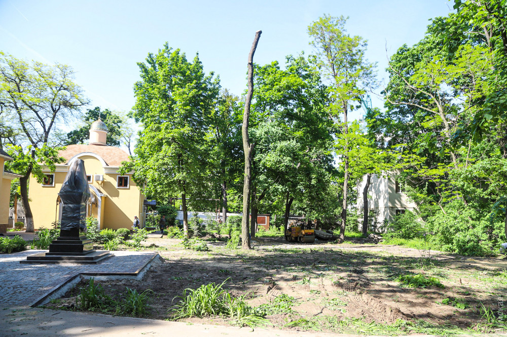 Освобожденная от деревьев площадка вплотную прилегает к храму УПЦ Московского патриархата, у которого 11 июня планируют открыть памятник православному деятелю и выдающемуся медику Валентину Войно-Ясенецкому (святителю Луке). Видимо, это такое «благоустройство».