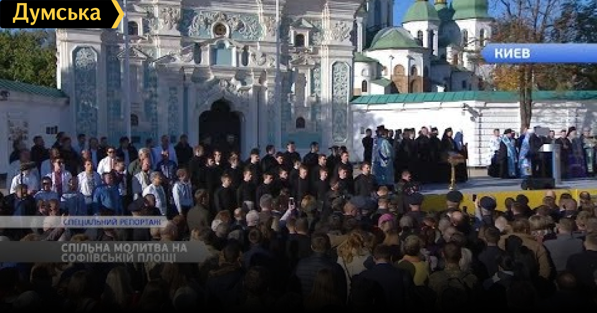 Сьогодні у Києві пройшла спільна молитва за Єдину церкву, армію і сильну Україну. На Софіївську площу вийшли декілька тисяч людей.