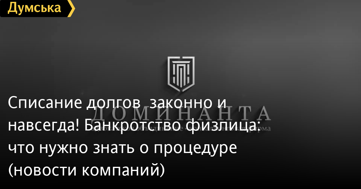 Подытоживая, отметим, что процедура банкротства физлица на сегодняшний день единственный и довольно эффективный механизм законного освобождения от долгов. После принятия нового Кодекса юристы Адвокатского объединения «КФ «Доминанта» первыми в Одесском регионе успешно списали долги одесситов, а сейчас предоставляют первичные консультации по банкротству физических лиц бесплатно.
