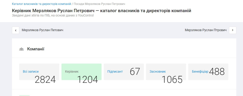 Компанії найрізноманітніші. Переважна більшість — пустушки, які жодної діяльності не ведуть. Багато або вже банкрути, або перебувають у процесі ліквідації. Частина активна й навіть бере участь у тендерах. Деякі фігурують у кримінальних провадженнях, що стосуються відмивання грошей (як елементи конвертаційних центрів) і контрабанди. За інформацією «Думської», останні пов'язані з групою відомого нардепа Іллі Павлюка, який має вплив на голову Одеської облради Григорія Діденка. Своя в дошку, словом, людина. Взагалі, дуже схоже, що Мерзляков скуповує фірми, які так чи інакше засвітилися в скандалах і виведені з гри, щоб потім використовувати їх у своїх цілях — яких, незрозуміло. Наприклад, 2019 року він придбав компанію «Українське морське агентство», яка раніше входила до групи «Каалбай». До продажу Мерзлякову ця фірма володіла розкішною яхтою Valerie, на якій відзначала свій день народження співачка Дженніфер Лопес. Світ тісний! У 2018-му Мерзляков став директором і засновником ТОВ «Торговий дім «Лакмар» (постачальник кремнійорганічних покриттів і епоксидних смол), яке на той момент було в списку санкцій РНБОУ, оскільки входило до групи російського бізнесмена Карена Григоряна. У 2020-му, щоправда, компанію з переліку виключили. Ще раніше, 2016-го, Мерзляков як бенефіціар щойно створеного ТОВ «Прайм Одеса» брав участь у спробі «уводу» в данської IT-компанії BIIR будівлі на Приморській вулиці міста, яку та придбала за 7 млн доларів. Він виступав у ролі підставного продавця «битого» активу. Данці в підсумку відбилися в суді. І таких прикладів маса. Ще у Мерзлякова купа кредитних боргів у найрізноманітніших містах України, але при цьому, повторимося, жодного кримінального провадження, хоча вони просто напрошуються. Навіщо йому знадобилося «Харчування плюс», ми можемо тільки здогадуватися. Далі буде Автор — Микита Горемика СМЕРТЬ РОСІЙСЬКИМ ОКУПАНТАМ! Помітили помилку? Виділяйте слова з помилкою та натискайте control-enter Новини по цій темі: 30 серпня 2025: Двісті відсотків прибутку на онкохворих: як лікарні Одеської області переплачують десятки тисяч за медичне обладнання 20 серпня 2025: «Формене свинство»: Мінфін залишив Одесу без кредиту у 623 мільйони на лікарні, школи та дороги 18 липня 2025: Сам себе миє, а оплата карткою: одеські комунальники витратять 18 млн грн на чотири автоматичні туалети для центру міста |