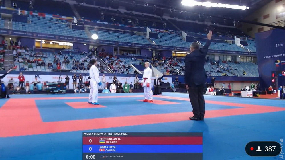 Трехкратная чемпионка Европы из Черноморска Одесской области Анита Серегина вышла в финал чемпионата мира по карате, который начался на днях в Дубае, а серебряный призер Олимпиады-2020, одесситка Анжелика Терлюга, выбыла из борьбы за медали первенства.