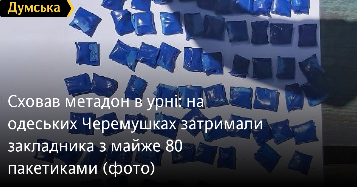 Сховав метадон в урні: на одеських Черемушках затримали закладника з майже 80 пакетикамиОдесита, який займався розповсюдженням метадону шляхом закладок, затримали правоохоронці в Хаджибейському районі Одеси. Як повідомили у пресслужбі поліції регіону, зловмисника затримали вранці на вулиці Маршала Бабаджаняна після того, як він встиг зробити закладку в урні з трьома пакетиками наркотичної речовини. Ще 75 пакетиків із метадоном були у чоловіка в кишені. Заборонену речовину в затриманого вилучили, а йому повідомили про підозру за ч. 1 ст. 307 КК України та відправили під варту з правом виходу під заставу. За скоєне зловмиснику загрожує від чотирьох до восьми років позбавлення волі. Помітили помилку? Виділяйте слова з помилкою та натискайте control-enter Новини по цій темі: 29 липня 2025: В Усатово Одеської області сталася перестрілка: поліція працює на місці (відео, оновлено) 28 липня 2025: П'яний на "Ягуарі" або гіпертонік? Звільнений топ-посадовець одеської поліції хоче повернутися на службу 19 червня 2025: Дівчинку, яку шукали сотні одеситів, знайшли вбитою: поліція працює з чоловіком, ймовірно причетним до загибелі 27 травня 2025: Увели гектар в університету: на Одещині засудили земельних аферистів, але без посадки і Хвоста |