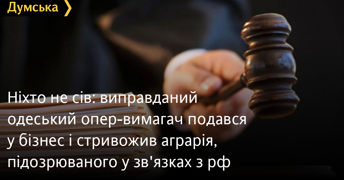 Ніхто не сів: виправданий одеський опер-вимагач подався у бізнес і стривожив аграрія, підозрюваного у зв'язках з рфГучна справа 2013 року про банду викрадачів в погонах під керівництвом співробітника одеського карного розшуку В'ячеслава Голодного закінчилася виправдувальним вироком. Після 12 років розглядів Приморський суд констатував, що фігуранти не винні за статтями про створення злочинного угруповання та викрадення, визнавши лише факт насильства та погроз, передає кореспондент «Думської». Але навіть за це ніхто не сяде — терміни давності минули. Нагадаємо, в серпні 2013 року групу оперуповноважених карного розшуку міськУВС Одеси затримали за підозрою в серії автомобільних крадіжок. Нібито ОЗУ викрадала машини, підробляла документи на них і продавала. Голодного виправдали за найтяжчими статтями: створення злочинної організації, викрадення людей, крадіжки, викрадення авто та підробка документів. Суд вирішив, що його вина в цих злочинах не доведена. Його визнали винним у перевищенні влади із застосуванням насильства та завідомо незаконному затриманні, призначивши п'ять років в'язниці, але відразу ж звільнили від покарання у зв'язку із закінченням строків давності. Аналогічна ситуація щодо спільників Голодного. ТРИ ЕПІЗОДИ В одній з історій фігурує батько В'ячеслава, який працював ювеліром. Нібито у 2007 році він взяв кредит під заставу будинку, але не зміг його погасити. Знайомий юрист запропонував свою допомогу за гроші. Батько передав йому 5 тис. доларів, а ще ювелірні вироби на таку ж суму. Вирішити проблему не вдалося і чоловік зажадав все повернути. Слідство вважало, що ювелір звернувся до сина, щоб той, використовуючи службове становище, гроші забрав (іншими словами — вибив). За версією слідства, Голодний зустрів боржника біля Київського райсуду Одеси і змусив написати розписку на 7 тис. доларів. В якості застави Голодний забрав Nissan Micra його цивільної дружини. Наступного дня, побоюючись за сім'ю, потерпілий зустрівся з Голодним, але той почав погрожувати, а пізніше біля його будинку з'явилися шестеро невідомих. За словами заявника, групою керував саме Голодний. Злякавшись за безпеку своєї сім'ї, юрист звернувся до управління внутрішньої безпеки.Далі — більше. Влітку того ж року банда вирішує відібрати ще одне авто — Daewoo Matiz. За версією звинувачення, в ніч на 20 червня спільник Голодного зламав машину, припарковану на Радісній в Одесі, перегнав її на Дальницьку, 47, де вони разом сховали авто на території складів. Голодний в суді заперечував звинувачення. Він стверджував, що Daewoo придбав за 800 доларів як проблемний автомобіль для ремонту і перепродажу, а про його можливе кримінальне походження не знав.Незважаючи на те, що і «Матіз», і «Мікру» виявили на одній території на Дальницькій, суд визнав вину недоведеною. Ще один епізод, пов'язаний з шахрайством і підбурюванням до хабара, стався навесні 2013 року. Тоді Голодний дізнався, що якийсь громадянин підозрюється в крадіжці товару. Не маючи офіційного відношення до цієї справи, опер разом зі спільниками викликав батька підозрюваного в будівлю управління міліції на Преображенську, 44. Там батькові заявили, що його сина затримують, але питання можна вирішити тихо за 30 тисяч доларів. Поторгувавшись, суму знизили до 10 тисяч. Батько, побоюючись за сина, погодився. Слідство розцінило це 
