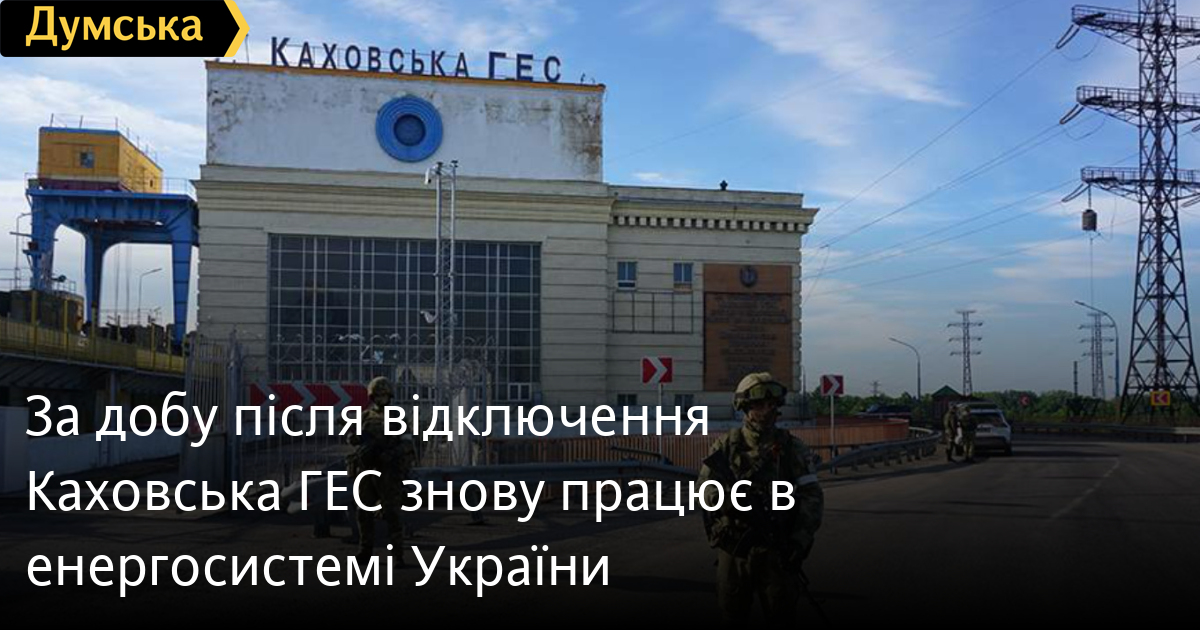 Тимчасово окупована Каховська ГЕС працює у штатному режимі та підключена до енергосистеми України.