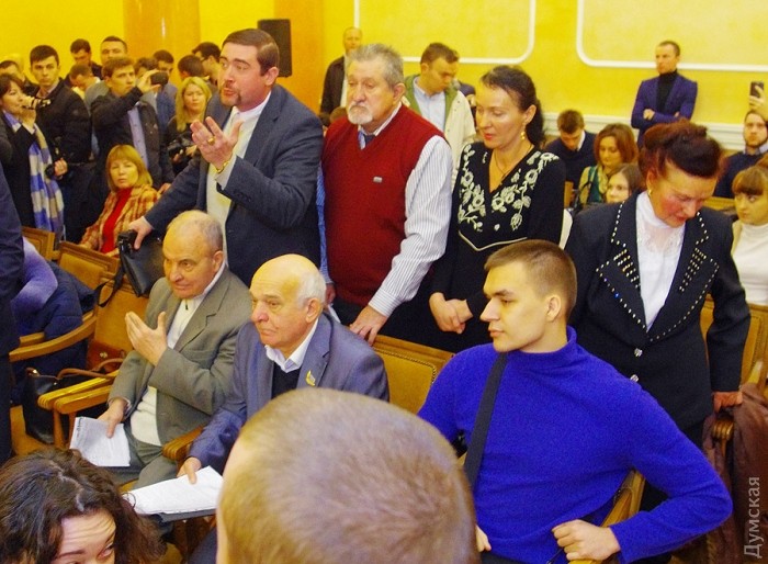 Активисты патриотических организаций подняли шум в сессионном зале Одесского горсовета — из-за отказа депутатов рассматривать вопрос о признании РФ агрессором.