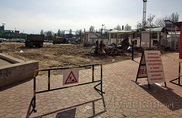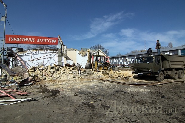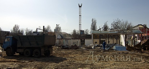 В Одессе начался демонтаж зданий ТЦ «Среднефонтанский» на одноименной улице. Рабочие расчищают место под новый торговый центр, который, по официальной версии, будет трехэтажным, а по слухам, намного выше.