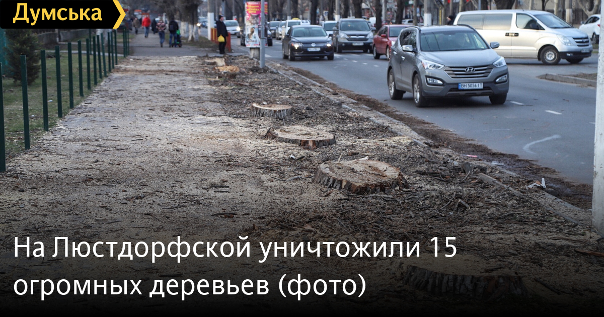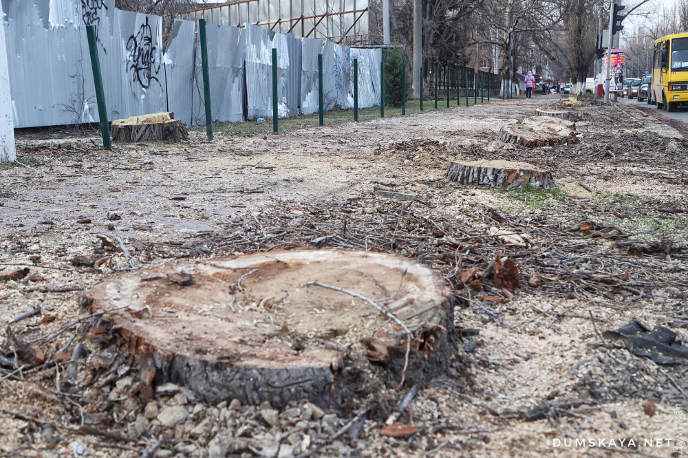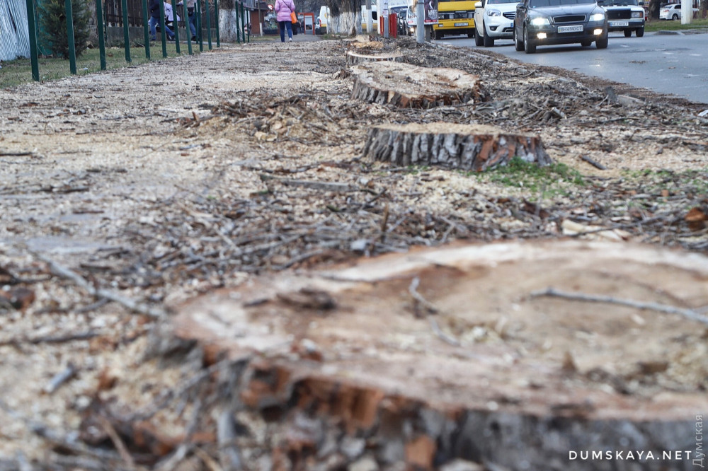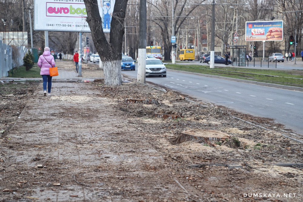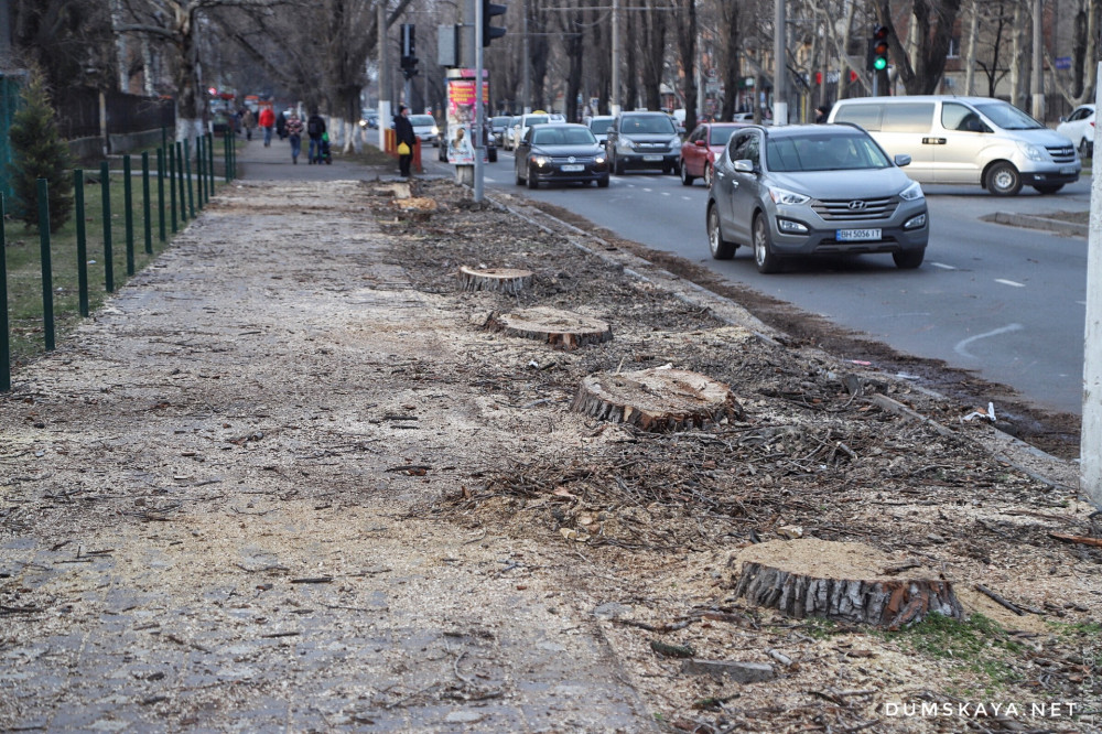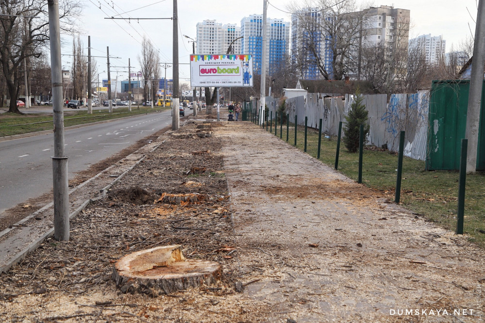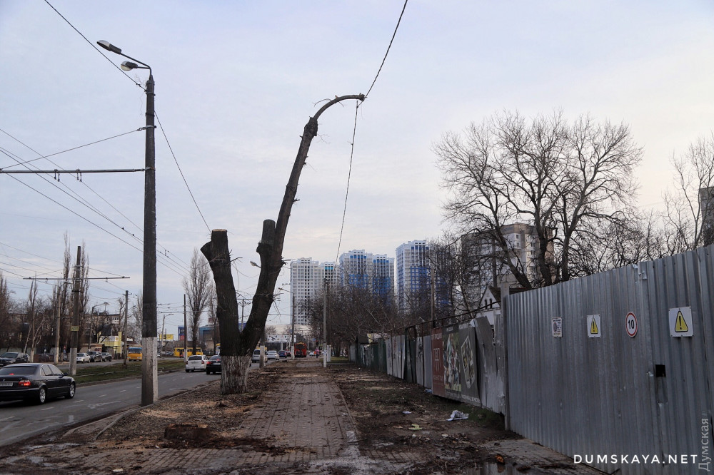 Полтора десятка больших деревьев уничтожили на участке Люстдорфской дороги от школы №51 до площади Толбухина.