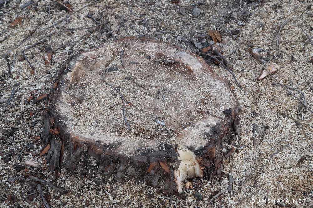 «Работала техника, бульдозер, бортовые грузовики, полно мужиков — собирали стволы и резали их пилами, грузили», — рассказывает свидетель случившегося Денис.