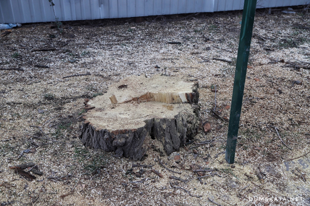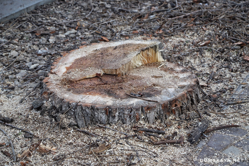 ОБНОВЛЕНО В 17:22. Как рассказали «Думской» в КП «Горзелентрест», муниципальный департамент экологии выдал предписание на удаление деревьев, признав их аварийными. Работала подрядная организация — якобы по заказу владельцев частных домов, расположенных по соседству.