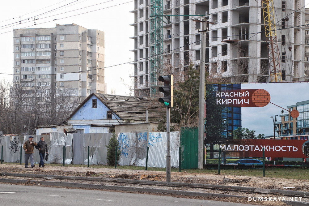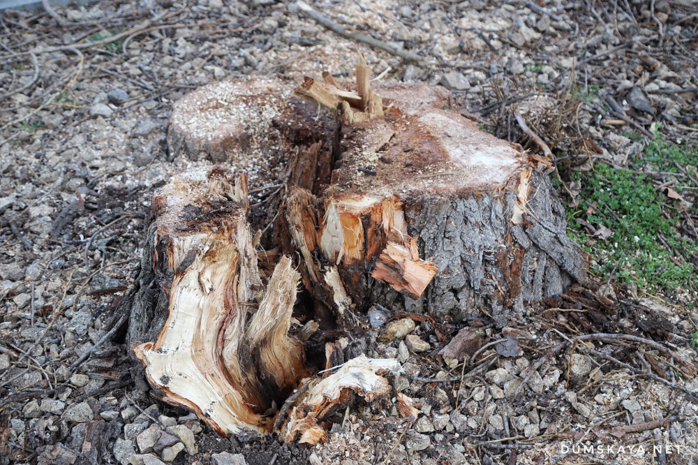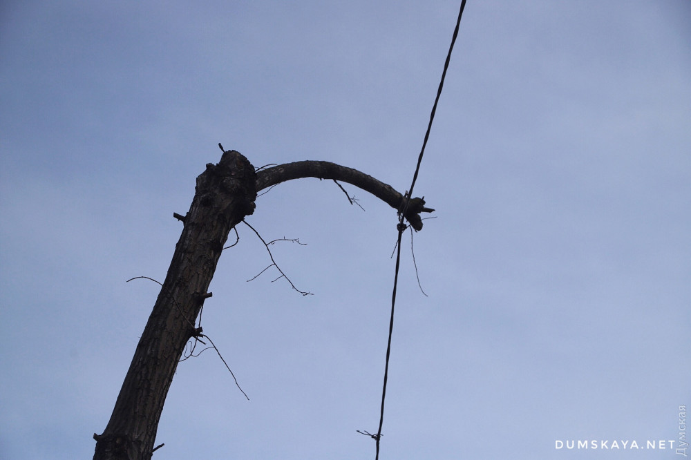 Как передает корреспондент «Думской», превращенный в пустыню участок прилегает к территории, где строится высотный жилкомплекс «Манхэттен». Уцелело всего одно дерево, которое строители используют в качестве опоры для высоковольтного кабеля.