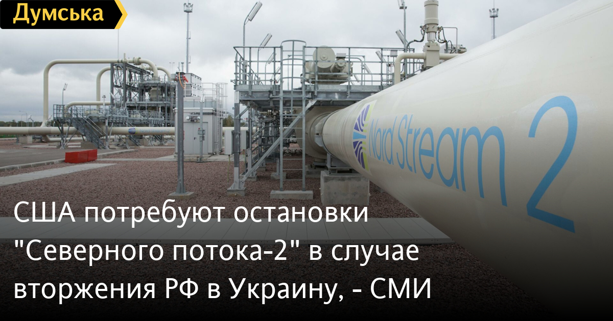 Соединенные Штаты Америки потребуют остановки работы «Северного потока-2» в случае вторжения Российской Федерации в Украину.