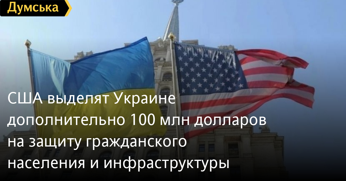 Соединенные Штаты Америки намерены выделить Украине дополнительно 100 миллионов долларов помощи на меры по защите гражданского населения и инфраструктуры страны.