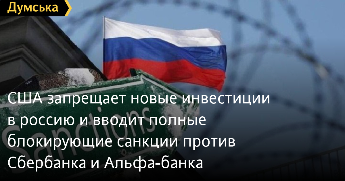 «Пока россия продолжает свое жестокое нападение на Украину, мы будем едины с нашими союзниками и партнерами в возложении на россию дополнительных расходов за ее действия. Эти санкции заморозят любые активы Сбербанка и Альфа-банка, связанные с финансовой системой США, и запретит американским лицам вести с ними дела»,- говорится в сообщении Белого дома.