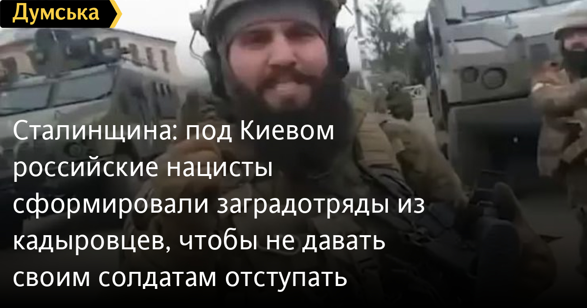 По его словам, такие специальные отряды кадыровцев стоят на киевском направлении. Их задача — сдерживать огнем российских военных, избегающих боевых столкновений с украинскими вооруженными силами.