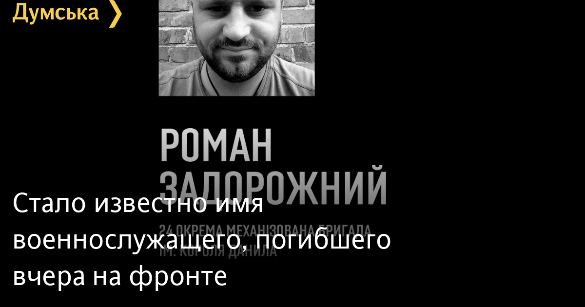 В результате вражеского огня 30 августа на фронте погиб военнослужащий 24-й отдельной механизированной бригады имени Короля Данила Роман Задорожный.