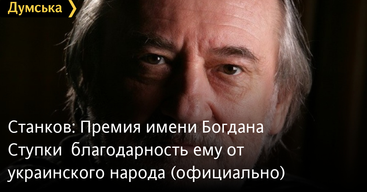 Станков: Премия имени Богдана Ступки – благодарность ему от украинского народа (официально)Государственная премия Украины имени Богдана Ступки, которая будет учреждена по поручению Президента Виктора Януковича, станет благодарностью великому актеру от украинского народа за его творчество, заявил начальник управления культуры и туризма, национальностей и религий Одесской областной государственной администрации Владислав Станков. «Богдан Ступка олицетворяет собой современный мир украинского кино и театра, а государственная премия его имени — это благодарность творцу от народа за достижения. Поэтому это очень важно, что Президент Виктор Янукович таким образом навсегда увековечил его память», — отметил Владислав Станков. Напомним, Президент Украины Виктор Янукович поручил премьер-министру Николаю Азарову до 20 августа подготовить и внести на рассмотрение Верховной Рады проект закона о внесении соответствующих изменений в Закон «О государственных наградах Украины, которые необходимы для учреждения премии имени Богдана Ступки. Богдан Ступка — украинский актер театра и кино, лауреат Шевченковской премии, Народный артист СССР, Герой Украины, сыграл около 100 ролей в кино и более 100 на сцене театров. Он скончался 22 июля 2012 года на 71 году жизни после тяжелой болезни. СМЕРТЬ РОССИЙСКИМ ОККУПАНТАМ! Заметили ошибку? Выделяйте слова с ошибкой и нажимайте control-enter |