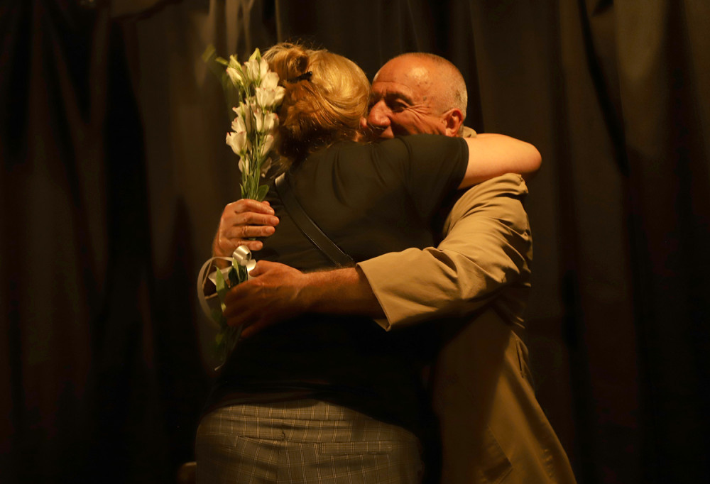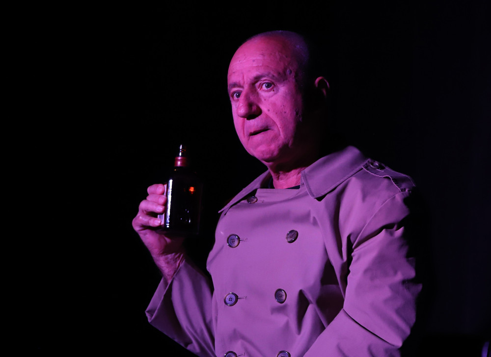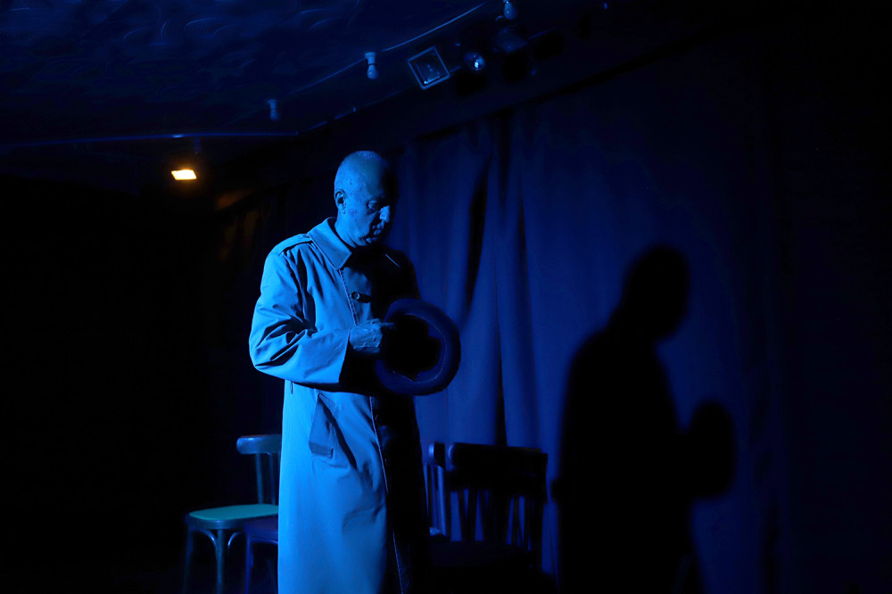 Невгамонный – дипломированный режиссер, что не мешает ему быть фантастическим разножанровым артистом, как говорится, с тысячью лиц. Юрий Михайлович также является желаемым партнером для многих актеров на сценах разных театров города (как это он до оперы еще не добрался?). И все же именно в моноспектакле его талант сияет в полном блеске. Родом артист из Дрогобыча, его владение украинским и польским языками глубокое, природное, заслушаться можно. Однако актер-режиссер вдруг решает, что публике надо немного отвлечься от текста (а спектакль идет-то всего 45 минут, при этом хочется еще!), и исполняет гротескный танец в постановке Олега Гусаренко, исполненный такого же мучительного поиска себя самого в этом обезумевшем мире.