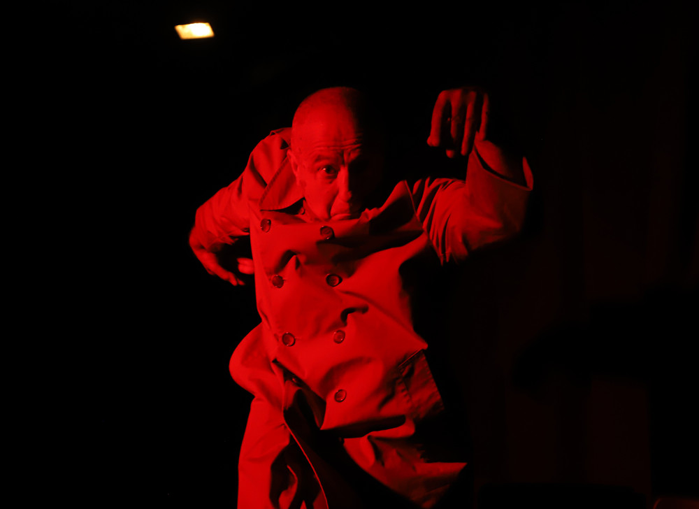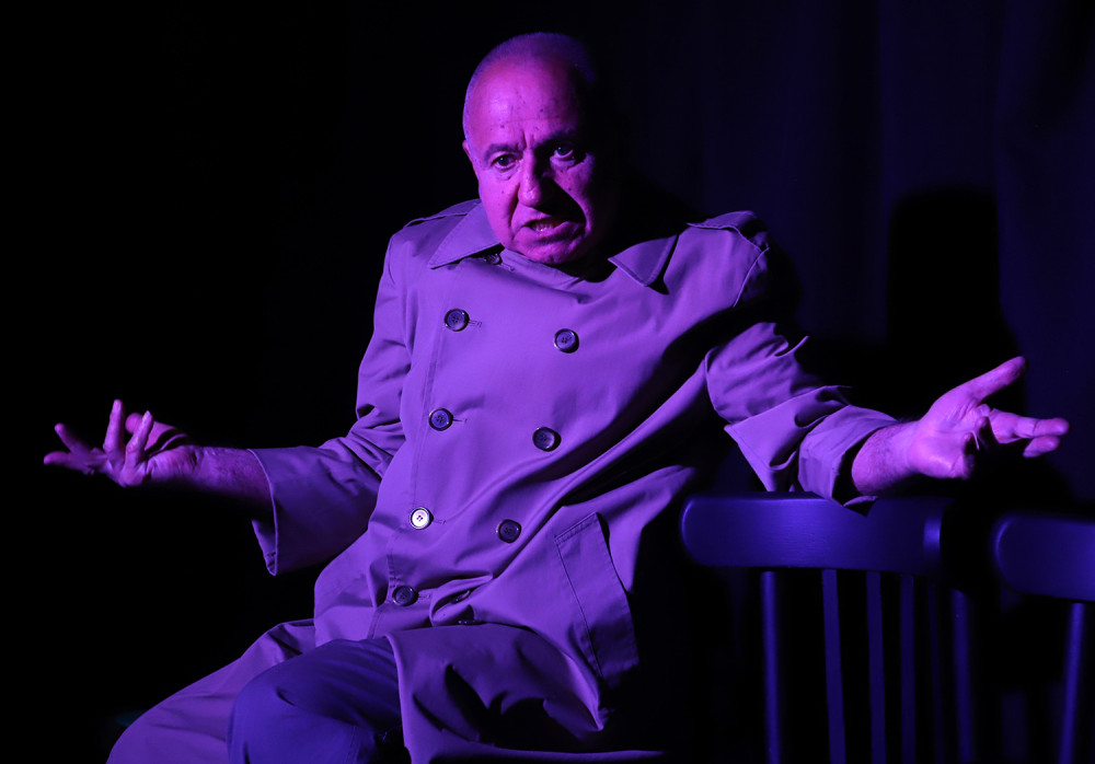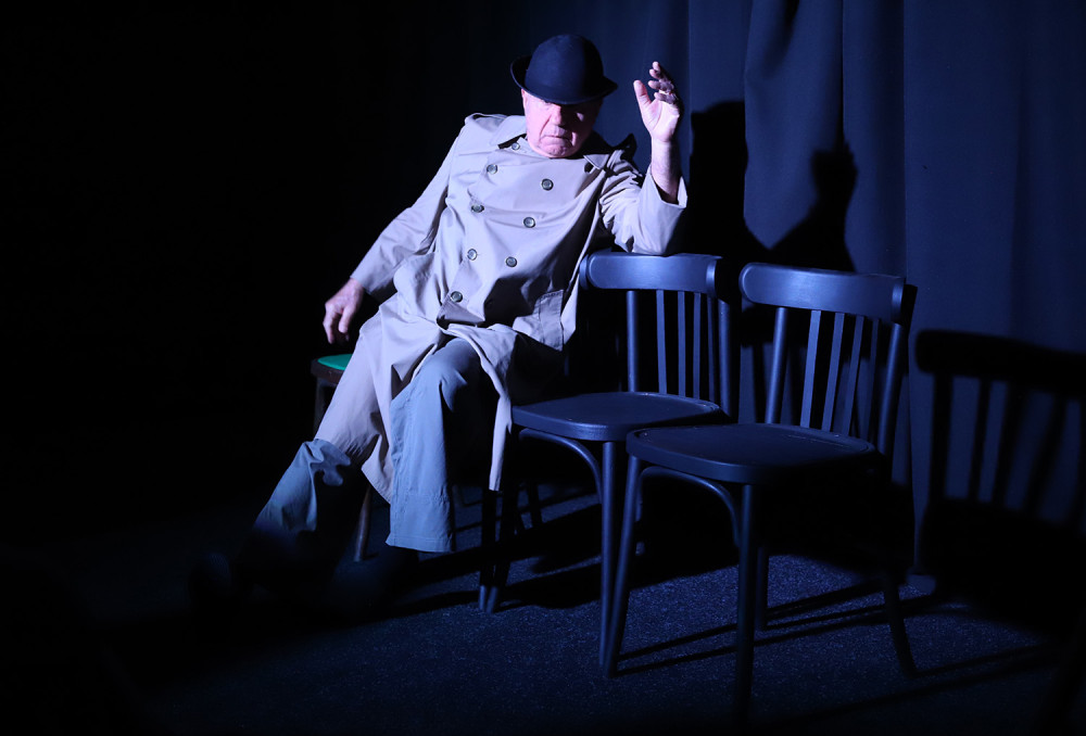 Надо сказать, по сравнению с прежними показами спектакль претерпел небольшие изменения, усовершенствования, нет никакой предсказуемости, все на нерве, как в последний раз, на острие злободневных смыслов. При внешнем отсутствии каких-либо событий внутренне действо чрезвычайно наполнено страстями, и неважно, что жарко на улице, ведь артист, играя в плаще (на дворе у героя осень!), повергает зал в состоянии прохлады. Композиция спектакля составлена из двух стихотворений и фрагментов прозаических произведений Тадеуша Ружевича.