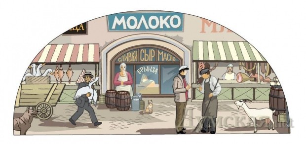 Капреализм Старейший рынок Одессы украсят панно со свинками и видом города. От Остапа Бендера заказчик отказалсяИнтерьер мясного корпуса старейшего из действующих рынков Одессы – Нового базара – украшают новыми панно. В настоящее время художники трудятся над композицией, которая изображает свинарок в окрестностях Хаджибея (авторы эскиза – Сергей Спектор, Евгений Разумяк и Тамила Тарама). Она находится на месте уничтоженного в апреле монументального соцреалистического полотна «Кормление колхозных свиней». Его создали в 1957-м году студенты Грековки. По словам директора рынка Сергея Колодько, «Свинарки» будут выполнены в технике барельефа. Всего в мясном корпусе появятся четыре панно. На второй картине – кстати, ее эскиз рисовала тоже команда Сергея Спектора – будет изображен исторический вид на Одессу «сквозь» Новый базар. Это полотно уже отпечатали на виниле. Читайте также: В Одессе на месте снесенного памятника архитектуры устроили оптовый рынок Студенты Грековки разрисовали забор одесского Нового рынка Решение по поводу двух оставшихся панно пока не принято, отметил Колодько. Сергей Спектор предлагал разместить на стенах корпуса сценки с участием литературных героев — Остапа Бендера и Михаила Паниковского («Остап на базаре»), а также песенных — рыбачки Сони и Кости-моряка («Рыбаки Малого Фонтана»). Однако в конце концов эти идеи отверг заказчик. СМЕРТЬ РОСІЙСЬКИМ ОКУПАНТАМ! Помітили помилку? Виділяйте слова з помилкою та натискайте control-enter |