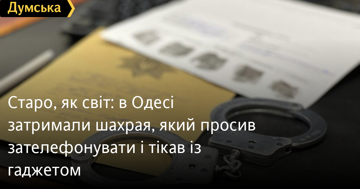Старо, як світ: в Одесі затримали шахрая, який просив зателефонувати і тікав із гаджетом29-річного одесита, який просив зателефонувати і тікав разом із телефоном, затримали правоохоронці. Як повідомили в пресслужбі регіональної поліції, за допомогою цього старого трюку шахрай ошукав шістьох людей. Промишляв він у кафе, магазинах і на зупинках громадського транспорту в Пересипському районі. Чоловік просив зателефонувати, щоб викликати таксі, чекав, доки власник гаджета відволічеться, і одразу тікав. Загальна сума завданих збитків перевищила 16 тисяч гривень. Поліцейські затримали правопорушника і виявилося, що в нього вже є чотири судимості за крадіжки. Викрадені телефони він встиг продати, але правоохоронці розшукали їх і повернули власникам. Фігуранту повідомили про підозру за ч. 1 і 2 ст. 190 КК України. Йому загрожує або штраф у розмірі від 51 до 68 тис. гривень, або виправні роботи на строк від одного до двох років, або обмеження волі до п'яти років, або позбавлення волі до трьох років. Помітили помилку? Виділяйте слова з помилкою та натискайте control-enter Новини по цій темі: 29 липня 2025: В Усатово Одеської області сталася перестрілка: поліція працює на місці (відео, оновлено) 28 липня 2025: П'яний на "Ягуарі" або гіпертонік? Звільнений топ-посадовець одеської поліції хоче повернутися на службу 19 червня 2025: Дівчинку, яку шукали сотні одеситів, знайшли вбитою: поліція працює з чоловіком, ймовірно причетним до загибелі 27 травня 2025: Увели гектар в університету: на Одещині засудили земельних аферистів, але без посадки і Хвоста |