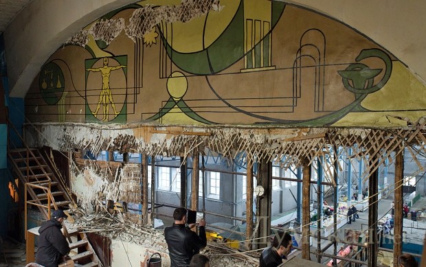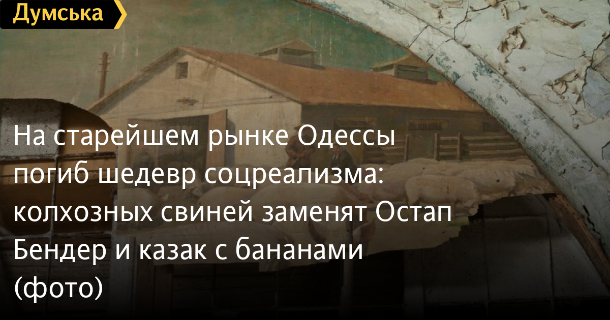 Рабочие, которые ремонтируют мясной корпус старейшего рынка Одессы – Нового, — уничтожили последнее живописное панно из четырех, когда-то украшавших торговый зал. Созданное в 1957-м году студентами Грековки монументальное полотно, на котором была изображена сцена кормления колхозных свиней, варварски изрезали ножами, сообщают очевидцы.