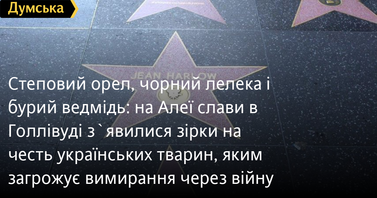 Степовий орел, чорний лелека і бурий ведмідь: на Алеї слави в Голлівуді з`явилися зірки на честь українських тварин, яким загрожує вимирання через війну