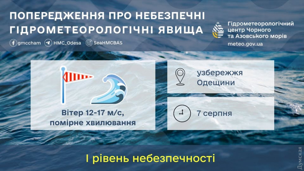 Стихія на підході: на Одещині очікують шквали, грози та ризики пожежШтормове попередження оголосили на Одещині через сильний вітер. Про небезпечні метеорологічні явища І (жовтого) рівня небезпечності попереджають у Гідрометцентрі Чорного та Азовського морів. За прогнозами синоптиків по Одесі та області в наступні кілька годин очікується посилення північного вітру з поривами 15-20 м/с, яке збережеться до кінця дня. Завтра, 7 серпня, вздовж узбережжя вдень пориви вітру сягатимуть 12-17 м/с, хвилювання моря помірне. Одеситів та гостей міста просять бути пильними і не залишати автомобілі під деревами. Крім того, у четвер погода сприятиме виникненню та швидкому поширенню пожеж у природі за наявності відкритого вогню. Повітря в Одесі вдень прогріється до +29+31°С, в області — до +28+33°С. Вночі в деяких районах можливий короткочасний дощ, гроза, вдень без істотних опадів. Температура морської води +23+24°С. СМЕРТЬ РОСІЙСЬКИМ ОКУПАНТАМ! Помітили помилку? Виділяйте слова з помилкою та натискайте control-enter |
