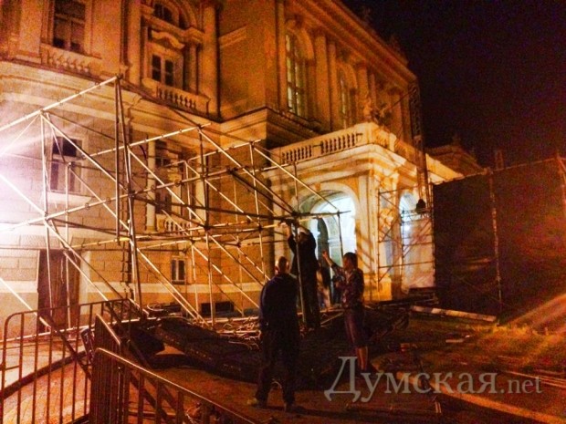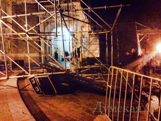 Сцена Второго Международного фестиваля искусств возле здания Одесского оперного театра также пострадала от урагана, накрывшего город 31 мая.