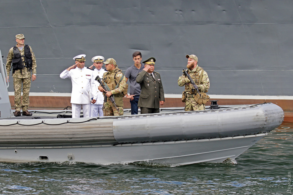 Многие хотели попасть на борт «Гетмана Сагайдачного», поэтому возле трапа флагмана образовалась огромная очередь. Изюминкой посещения стал палубный вертолет Ка-27ПС борт 29, который выставили для обозрения на вертолетной площадке.