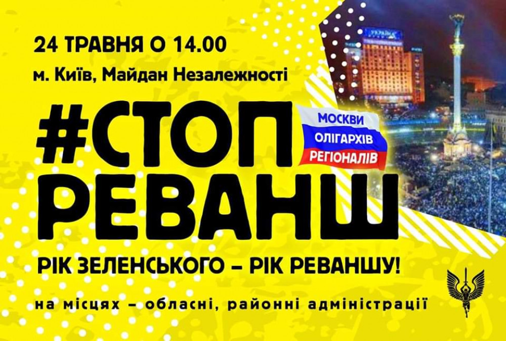 «Год Зеленского — это год реванша и мы каждый день в этом убеждаемся! Поэтому 24 мая в 14:00 выходим на Майдан или на площади своих городов — остановим реванш вместе!» — отмечается в сообщении организатора акции — движения «Рух Опору Капітуляції».