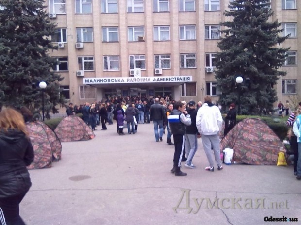 По зданием Малиновской райадминистрации, где дислоцируется окружная избирательная комиссия 134-го округа, появились палатки.