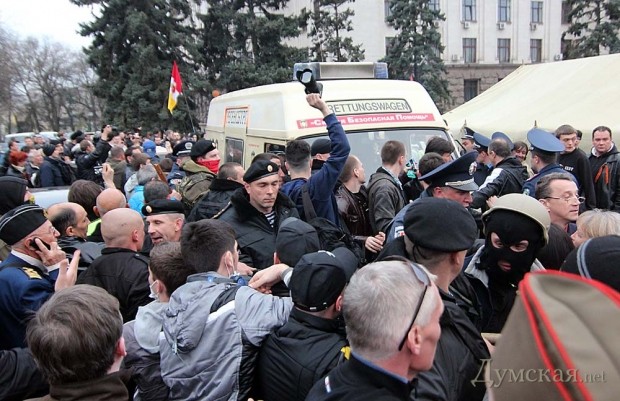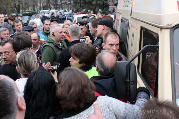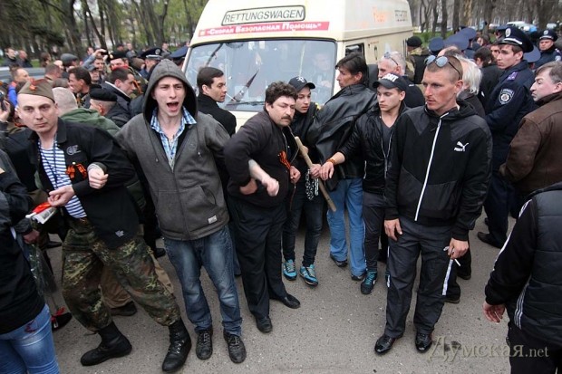 Сторонники России привезли с 11-й станции Большого Фонтана пленного «евромайдановца» и сдали его милиции.