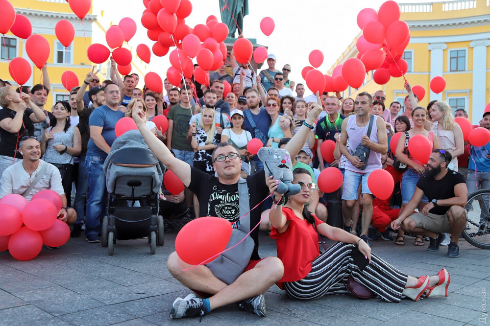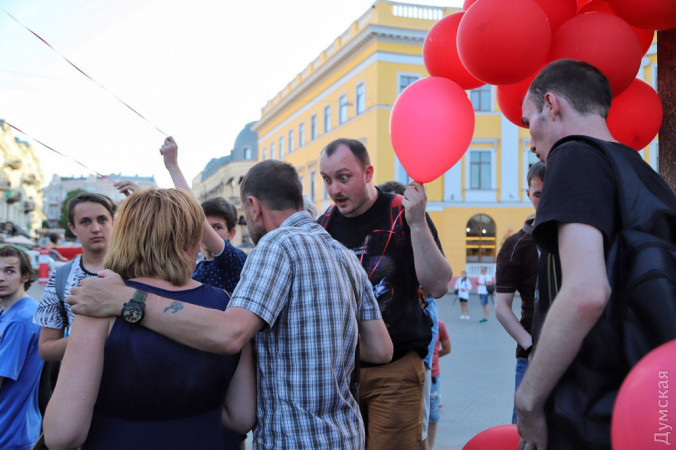 Примерно 100 человек с красными шариками обступили активистов, кандидатов и избирателей ЕС, среди которых были участники войны, и устроили троллинг. Вспыхнуло несколько перепалок, но до рукоприкладства дело не дошло.