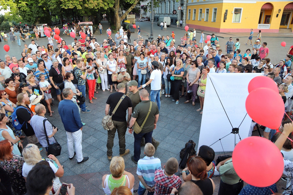 Встречу одесситов с кандидатами в народные депутаты от «Европейской Солидарности» пытались сорвать люди, представившиеся сторонниками партии пророссийского пропагандиста Анатолия Шария.