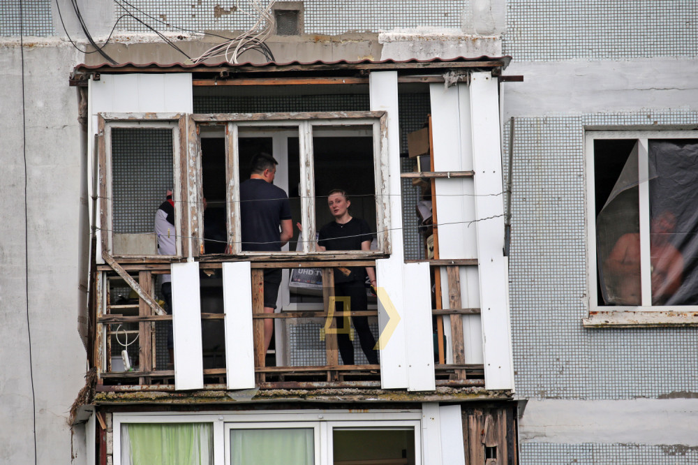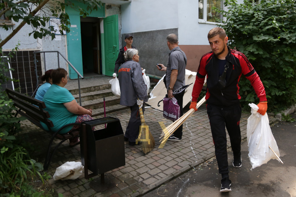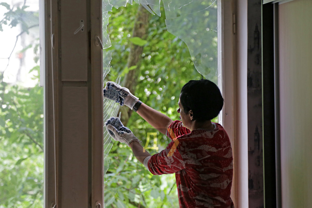 Сотні людей зараз розчищають квартири, заповнюючи сміттєві баки битим склом.