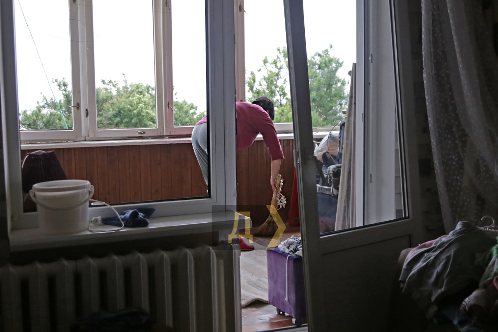 «Ночувала в іншій квартирі, а коли вранці повернулася в цю, то спершу не знала, що робити — усе скло вибито, у кімнатах усе перевернуто. Вибухова хвиля пройшла квартирою, перевернувши навіть меблі», — каже вона.