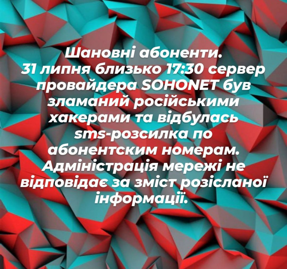 У компанії заявили, що їхній сервер зламали російські хакери і за зміст розсилки Sohonet відповідальності не несе.