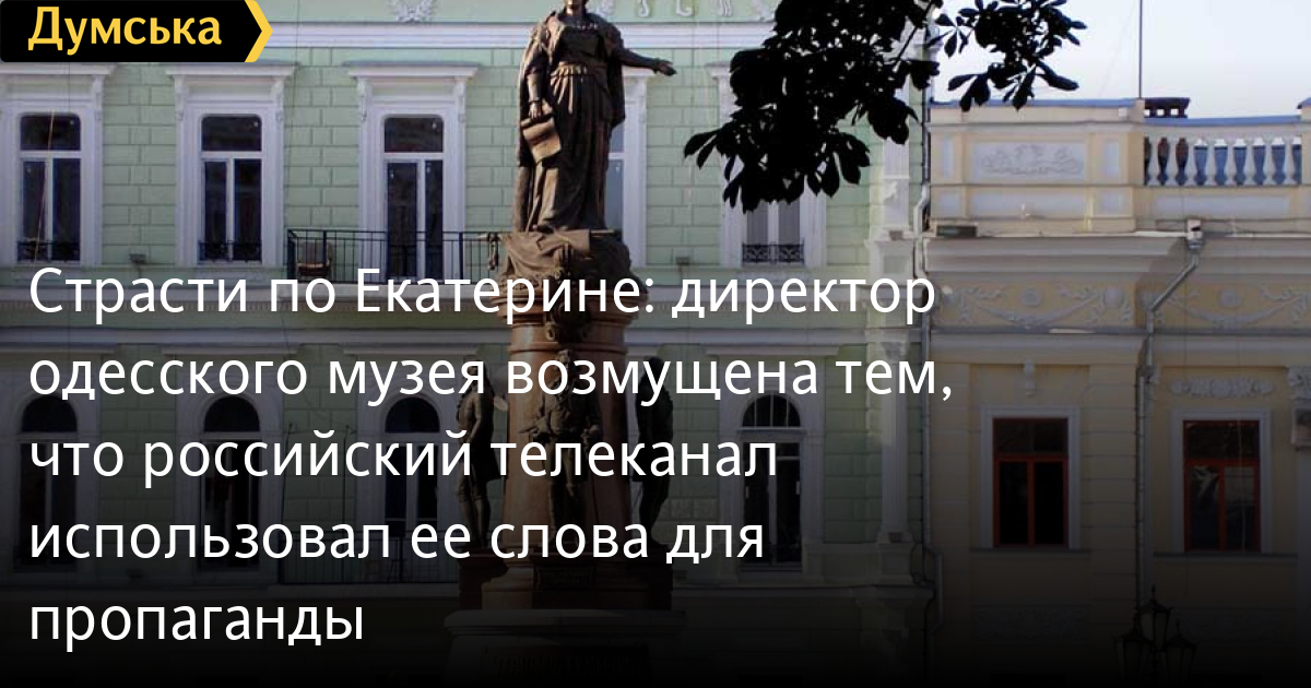 Директор одесского музея личных коллекций имени Блещунова Светлана Остапова возмущена подлостью российских телевизионщиков, которые обманом сумели получить у нее комментарий относительно ситуации вокруг памятника Основателям Одессы и использовали его в пропагандистском материале.