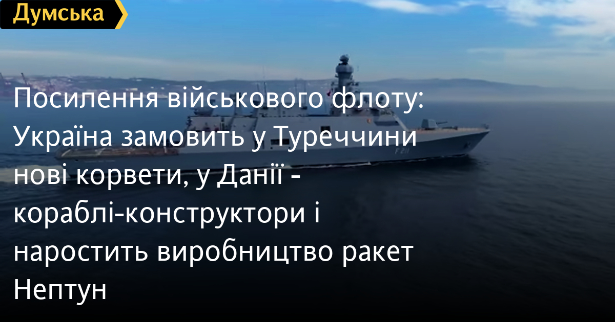 Посилення військового флоту: Україна замовить у Туреччини нові корвети, у Данії — кораблі-«конструктори» і наростить виробництво ракет «Нептун»